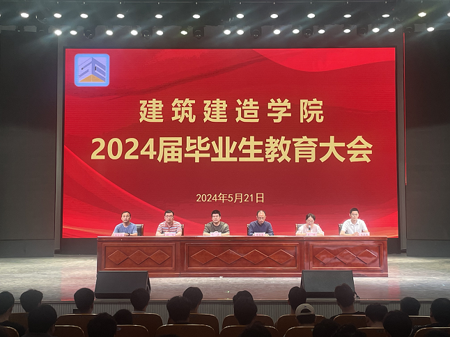 5月21日下午,建筑建造学院在会堂组织召开2024届毕业生教育大会。学院领导班子、全体毕业班班主任和2024届毕业生参加了此次大会。